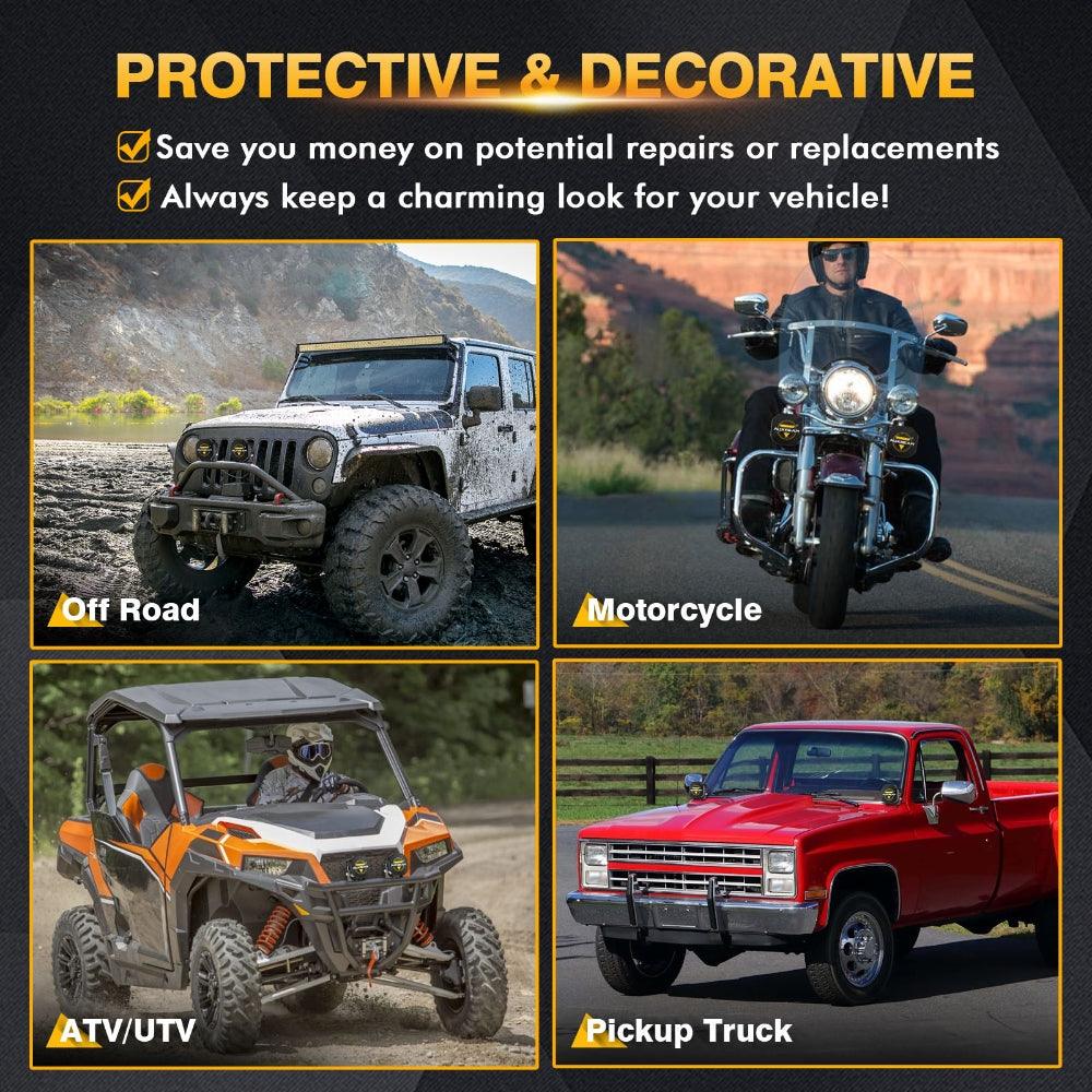 Easy to Install: Snap-on design, these 3" covers securely fasten to the ff-road lights, preventing vibration and falling off, so swapping them out is quick and simple.
