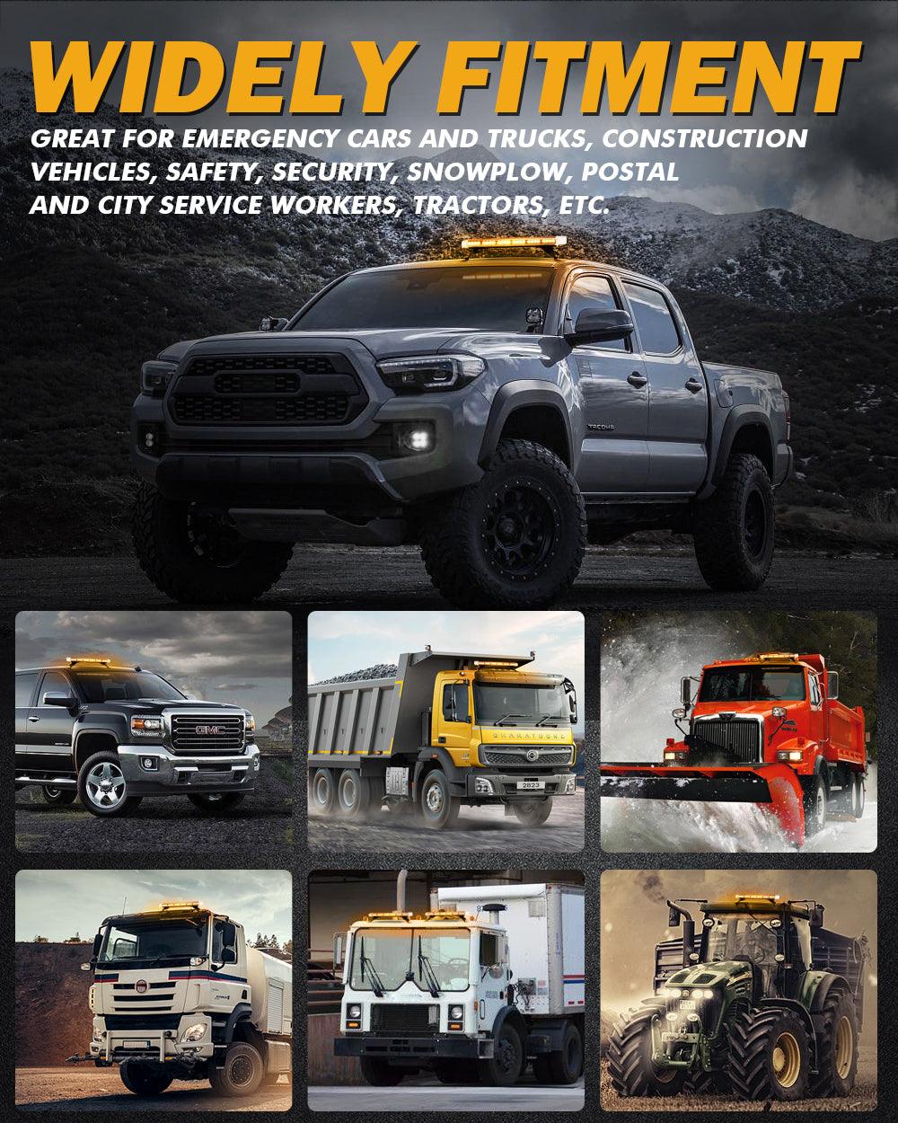 Perfect Bright: This emergency flashing light bar has a total of 56 high-power 3W LED chips. Crystal clear lens for max brightness, visible day and night. Great for law enforcement cars, plow trucks, construction vehicles, tractors, security, snowplow, postal, mail carrier, and city service workers, to warn of potential hazards.