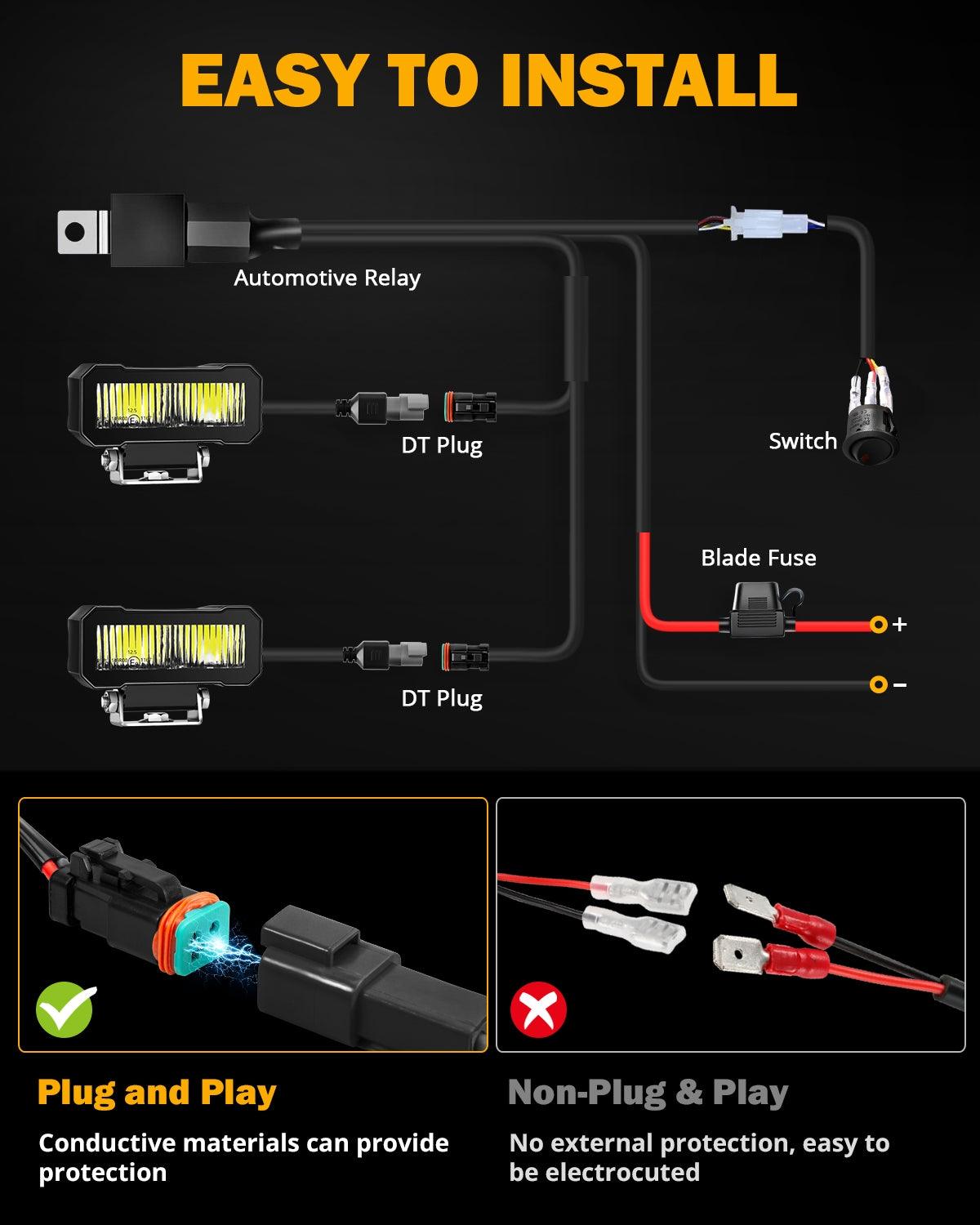 Easy Installation: Our LED lights come with a plug-and-play wiring harness kit.Say goodbye to the tedious installation process and hello to hassle-free lighting.