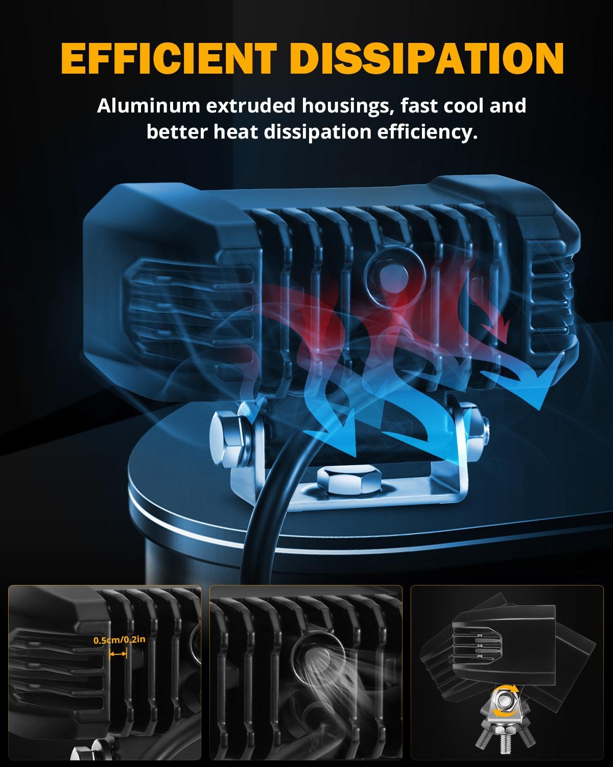 Exceptional Performance: HFL3 LED chips with high intensity and perfect visibility, the perfect option for led driving light.Patented design double angle cup. Two different reflector cup angle designs, light output increased by 10%.
