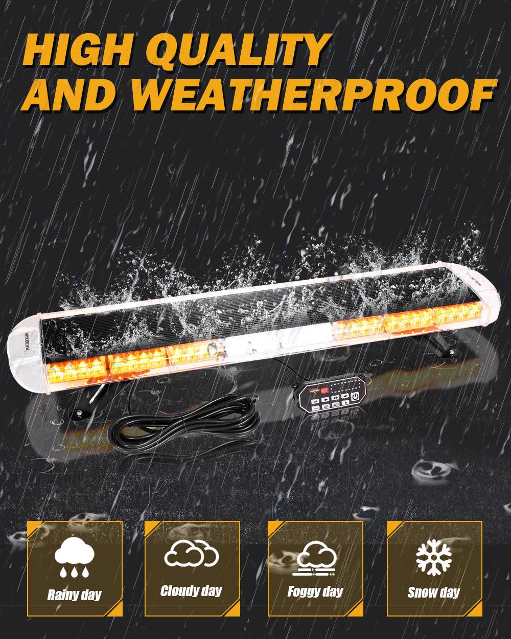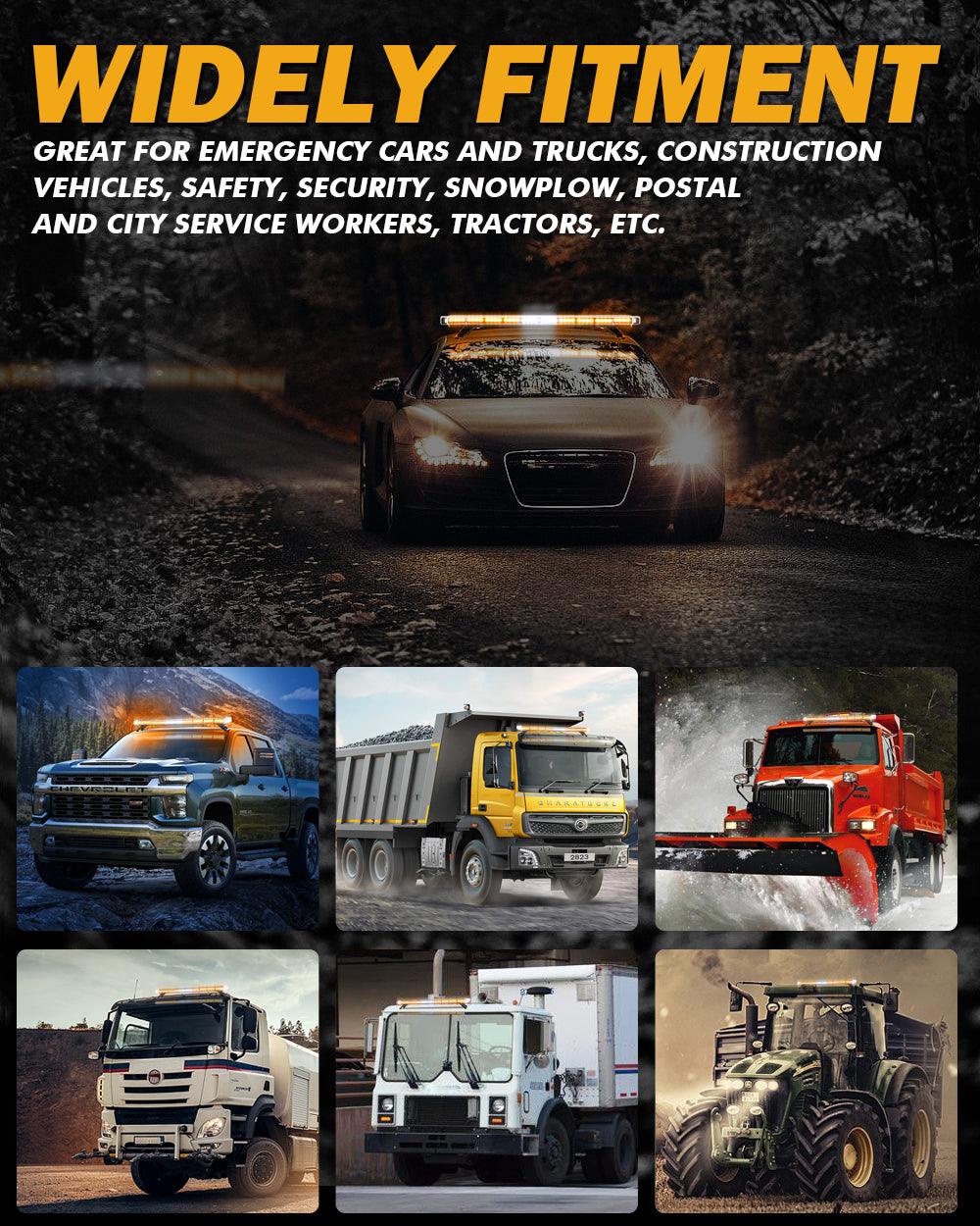 Perfect Bright: This emergency flashing light bar has a total of 88 high-power 3W LED chips. Crystal clear lens for max brightness, visible day and night. Great for law enforcement cars, plow trucks, construction vehicles, tractors, security, snowplow, postal, mail carrier, and city service workers, to warn of potential hazards.
