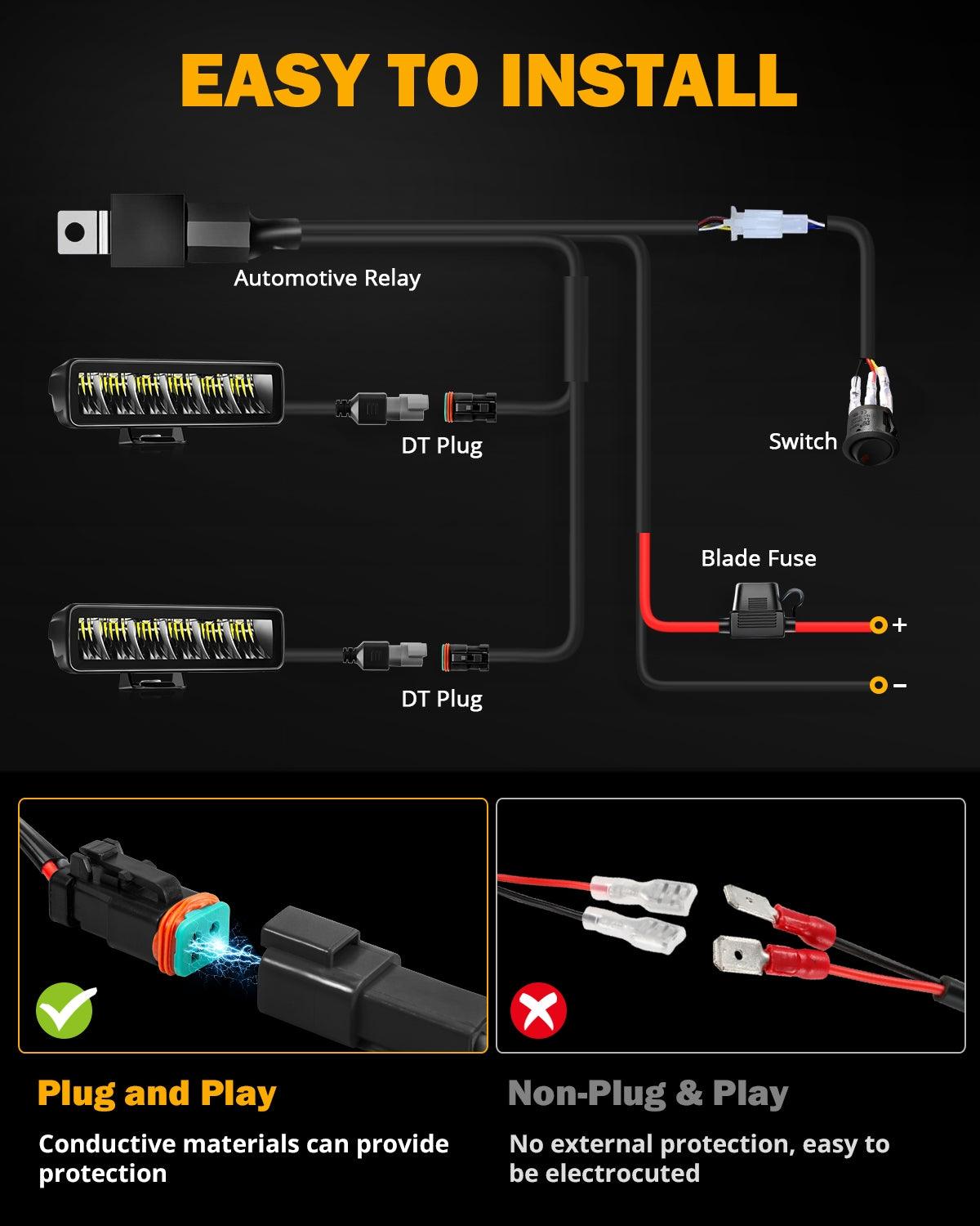 Easy Installation: Our LED lights come with a plug-and-play wiring harness kit.Say goodbye to the tedious installation process and hello to hassle-free lighting.