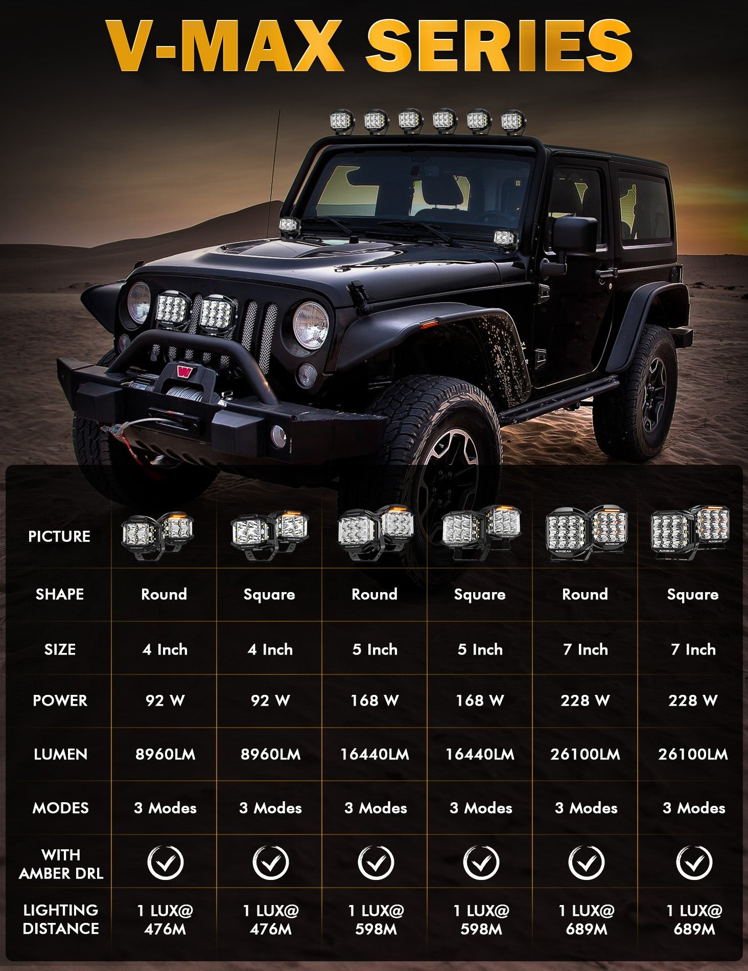 Auxbeam 4" Round V-MAX Series Combo Beam Side Shooter LED Pod Lights with Amber DRL