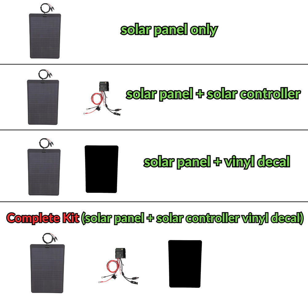 7. Easy to install plug-and-play wiring. The optional Plug-and-play 10A Waterproof MPPT solar controller. It comes pre-wired with fuses, terminals, and connectors. It features advanced MPPT control with intelligent protection against risks like reverse polarity and overcharging. Compatible with Sealed, AGM, Gel, Liquid, and Lithium-ion batteries.