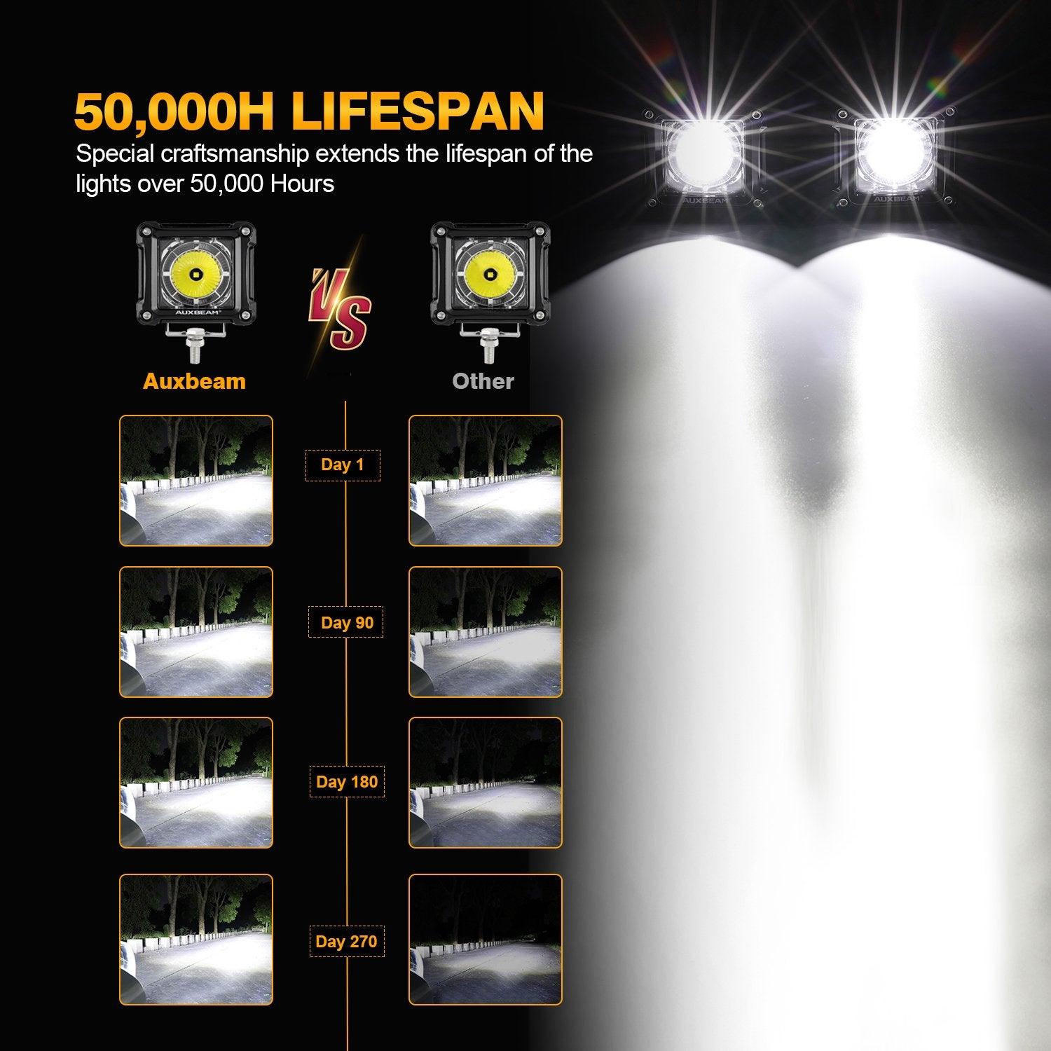 2 Modes LED Pods: Daytime running light mode & Spotlight mode