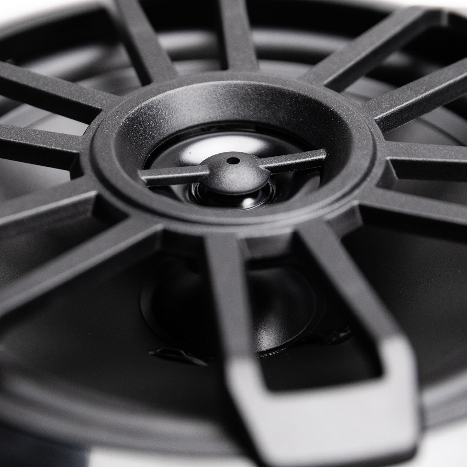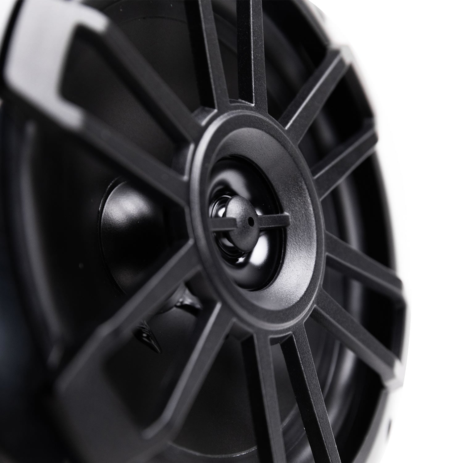 Two 6.5 inch coaxial speakers with 0.75 inch composite dome tweeters: Water resistant composite polypropylene cone with temperature stable UV Butyl rubber surround mounted on a lightweight composite frame. |