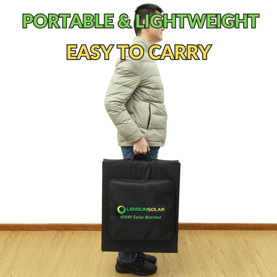 The LensunSolar 36V 400W Portable Solar Blanket is the ultimate in portable, lightweight solar power for any camping lifestyle. Built for durability and efficiency, it features a solid copper backing and thick connectors for better performance.