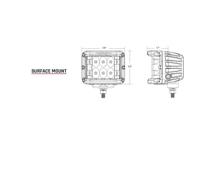 One of RIGID’s most versatile, compact lighting solutions just got better with the RIGID D-SS PRO, Dually-Side Shooter PROfessional Race Output LED pod. Perfect for any application that requires a wide spread beam, including A-Pillars, Fog Lights, and motorcycle applications. The D-SS PRO incorporates powerful optics and recently improved LED technology for greater output with the added benefit of additional LEDs aimed to the side for a much broader beam. The D-SS PRO packs a powerful punch with up to 102% more raw lumens depending on the optics chosen The D-SS PRO fixtures boast up to 120-degrees of horizontal lighting coverage when used in pairs or when used in the single light applications. The main forward-facing LEDs are available with RIGID’s advanced Spot, Flood, or Driving optics, so there’s a D-SS PRO lighting solution for nearly any application. The D-SS PRO LED lights are available in pairs with three side-shooting LEDs on one side of each fixture, or in single applications with a pair of side-shooting LEDs on both sides of the fixture. Only RIGID provides a broad, powerful lighting solution in such a compact package.