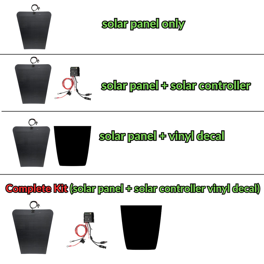 6. The optional custom-fitted vinyl decal. A vinyl decal between the solar panel and hood is highly recommended. It protects the vehicle paint from damage.