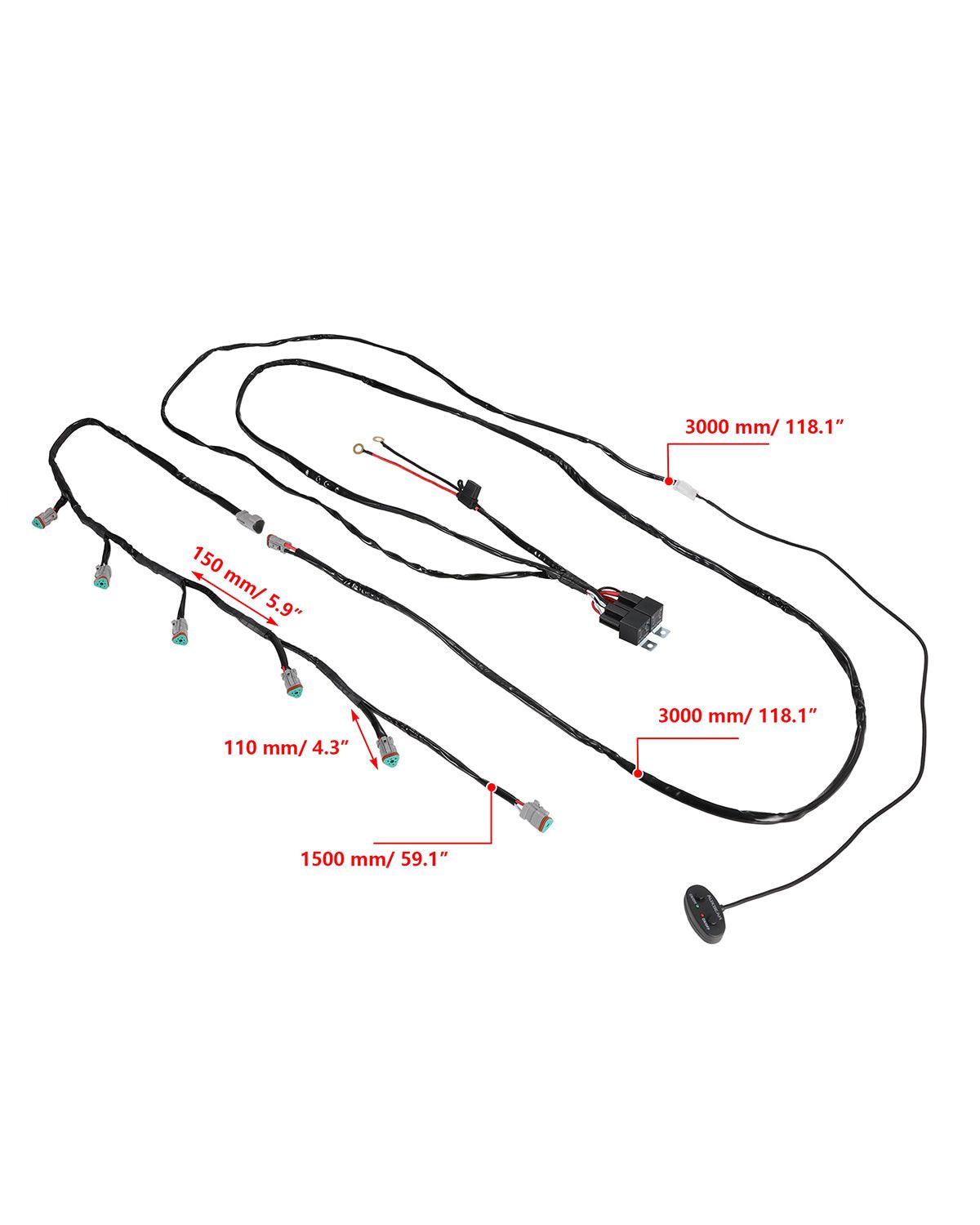 Plug and Play: The ultra-high quality features of the LED wiring harness kit make it a must-have tool for connecting any lights to your vehicle. The 6-Pod LED harness is easy to install, comes with 3 wires DT Plug and can be used for roof or bumper in your vehicle.