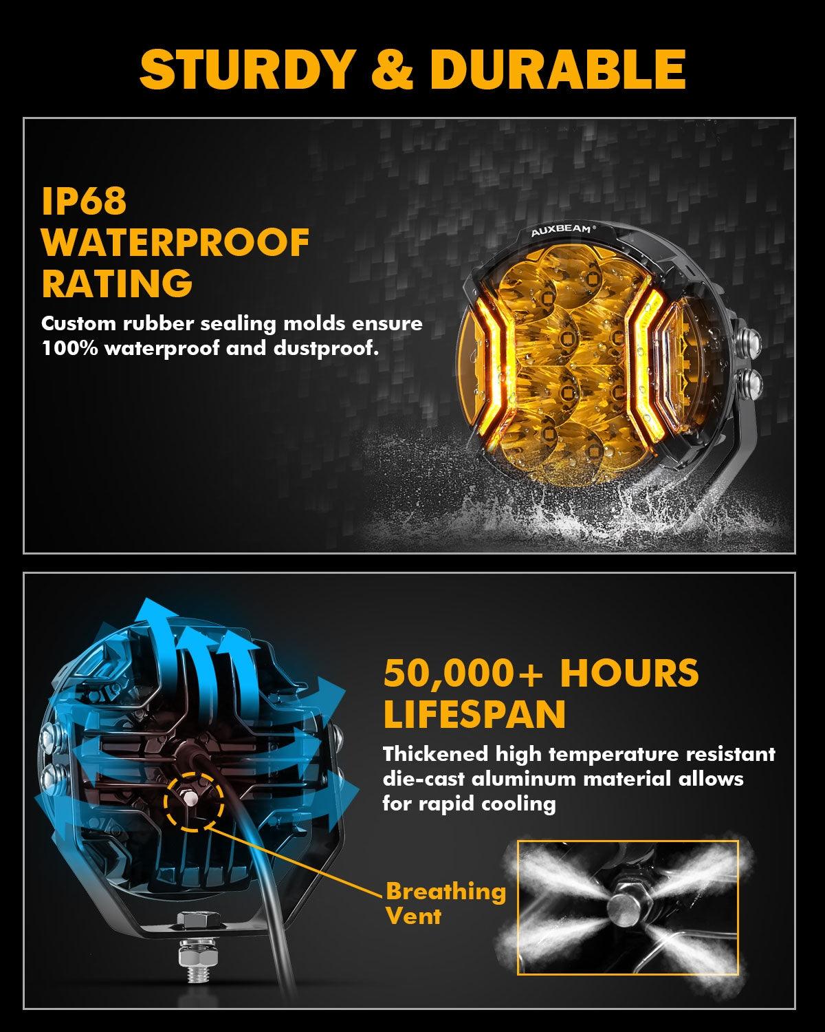 Amber DRL Light Feature: Our DRL design is truly one-of-a-kind. We've added an amber DRL light function that works in tandem with our ultra-bright amber light. Not only alerts other drivers in foggy or rainy conditions, but also complements other weak headlights on your vehicle. This feature also adds a touch of fashion style and elevates its overall appearance.