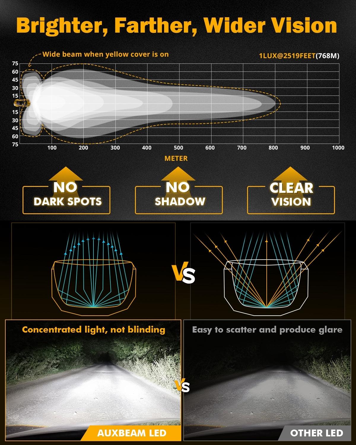 Trusted Brightness: Employ top-notch P8 led chips, total 174 watts, with lighting performance 20400LM. Features a trusted brighter long-lasting light, and a clearer, wider, and further visual area. Lifespan extends over 50,000H.